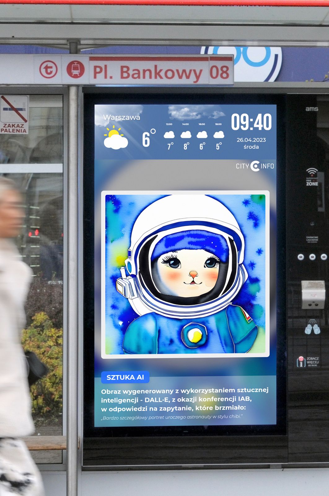 Zabawa spotkała się z dużym zainteresowaniem użytkowników i zaowocowała super grafikami! 😊 Zobaczcie obrazy wybranych artystów i sprawdźcie, jak prezentowały się na mieście. AI + DOOH = ❤️
