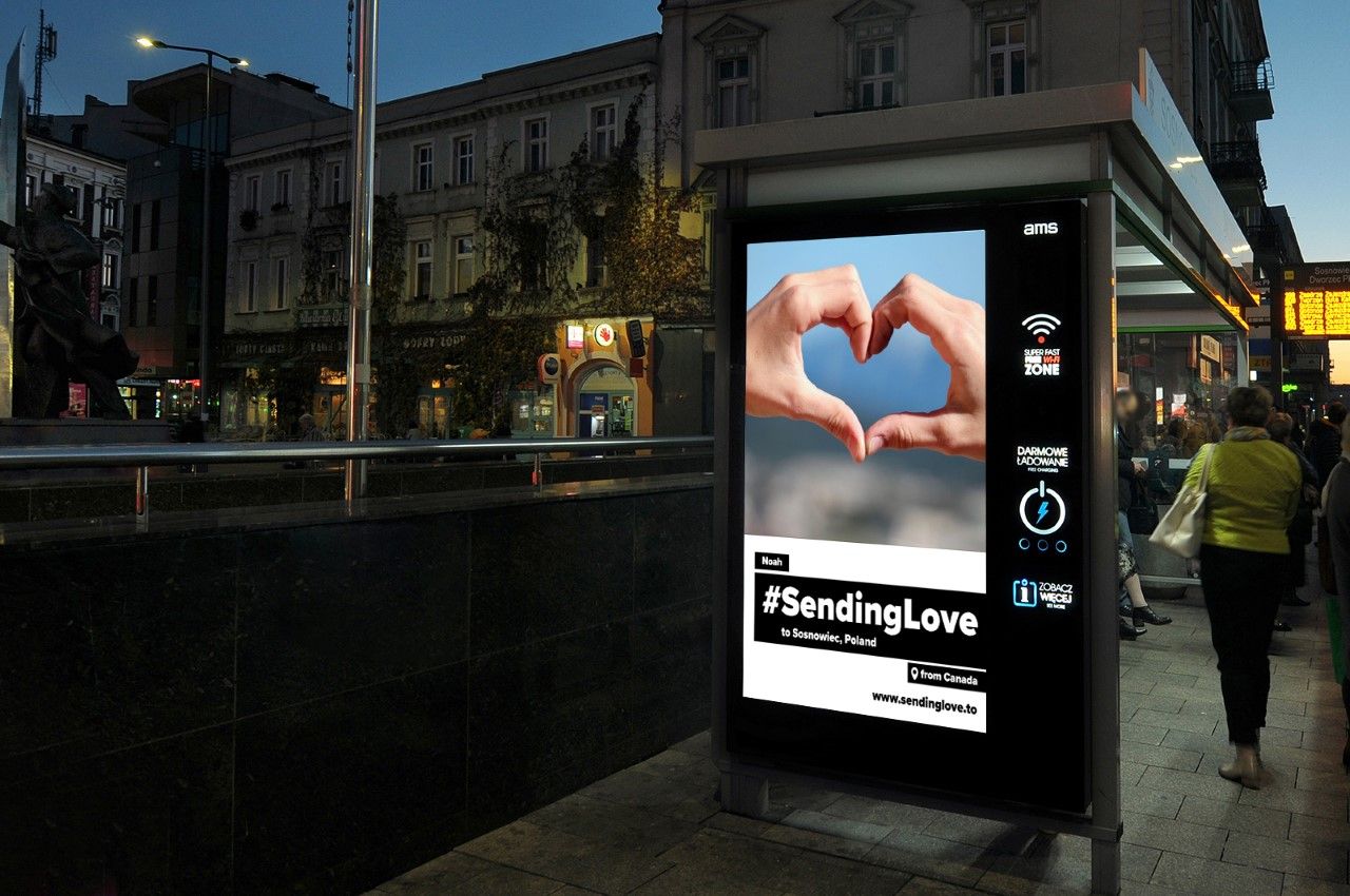 Akcja z przesyłaniem miłości #SendingLove była prowadzona na nośnikach Digital Out-of-Home w 153 miast 24 państw na całym świecie. Do akcji przyłączyło się ponad 70 firm reklamy zewnętrznej, w tym AMS 🙂