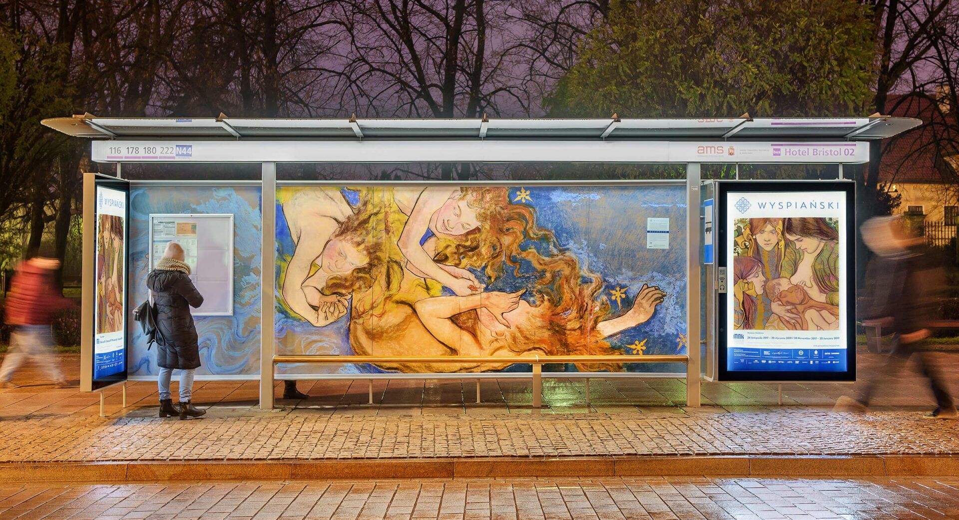 Działalność AMS to nie tylko reklama, ale również realny wpływ na kształtowanie krajobrazu miejskiego poprzez meblowanie polskich miast, budowanie wiat przystankowych, tworzenie nowoczesnych rozwiązań łączących świat offline z online, aktywny udział w debatach, konferencjach i spotkaniach na temat współczesnego miasta oraz niezliczone akcje społeczne, jak ta prezentująca dzieła Wyspiańskiego w przestrzeni publicznej.