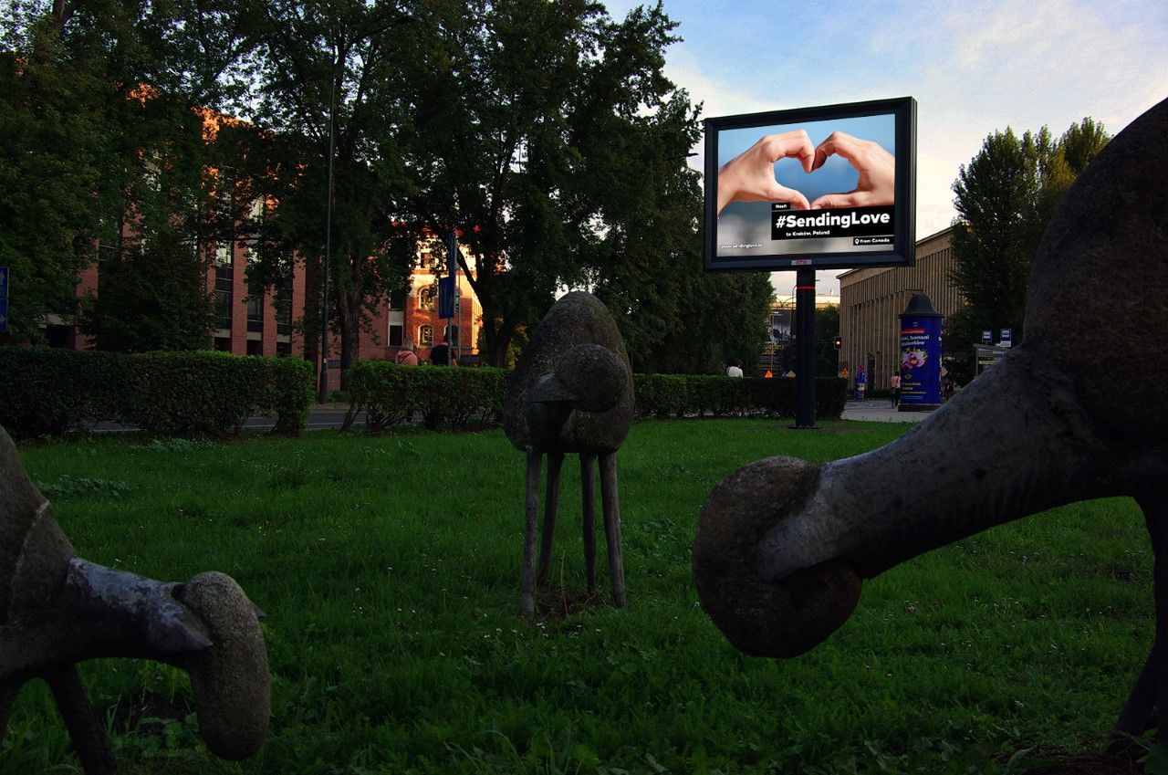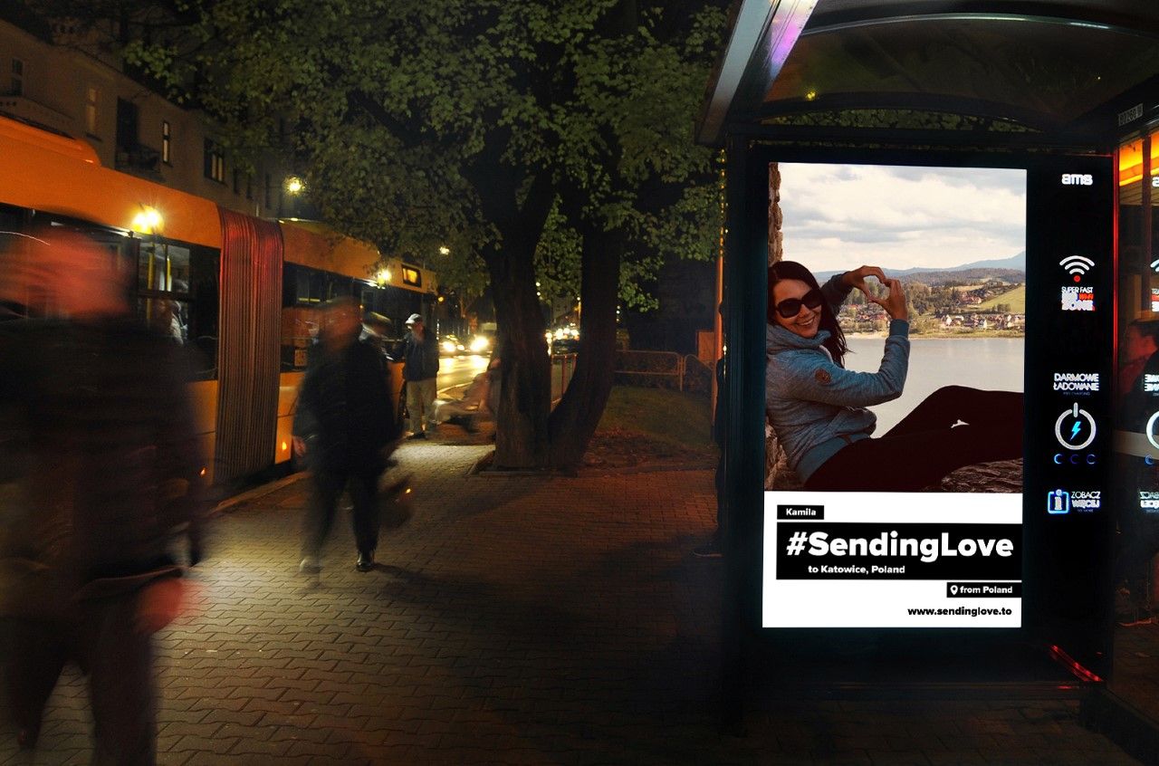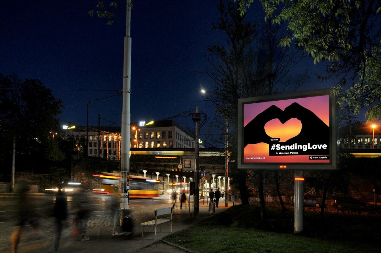 Akcja z przesyłaniem miłości #SendingLove była prowadzona na nośnikach Digital Out-of-Home w 153 miast 24 państw na całym świecie. Do akcji przyłączyło się ponad 70 firm reklamy zewnętrznej, w tym AMS 🙂