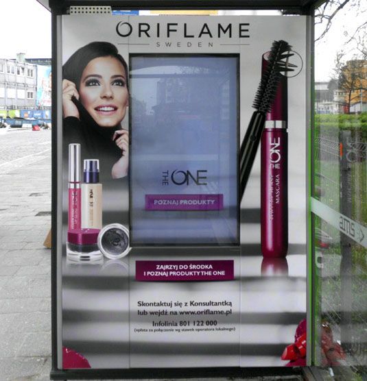 W kwietniu br. wystartował interaktywny projekt Oriflame zrealizowany wspólnie przez Arenę, AMS i Adumę. Realizacja stanowi element kampanii wprowadzającej nową serię kosmetyków kolorowych The ONE. Na jej potrzeby przygotowana została multimedialna wiata na przystanku – wyposażona w 46’ ekran dotykowy, dzięki któremu można zapoznać się z katalogiem produktów Oriflame z serii The ONE i skomponować własny zestaw kosmetyków, a dzięki wbudowanej kamerze – zrobić sobie pamiątkowe zdjęcie, które aplikacja przetworzy, uzupełniając je o wybrany zestaw kosmetyków. Dodatkową innowacyjnością projektu jest możliwość wysłania wygenerowanego w ten sposób zdjęcia na wskazany adres mailowy, dzięki czemu zainteresowani otrzymają personalizowany mailing od Oriflame.